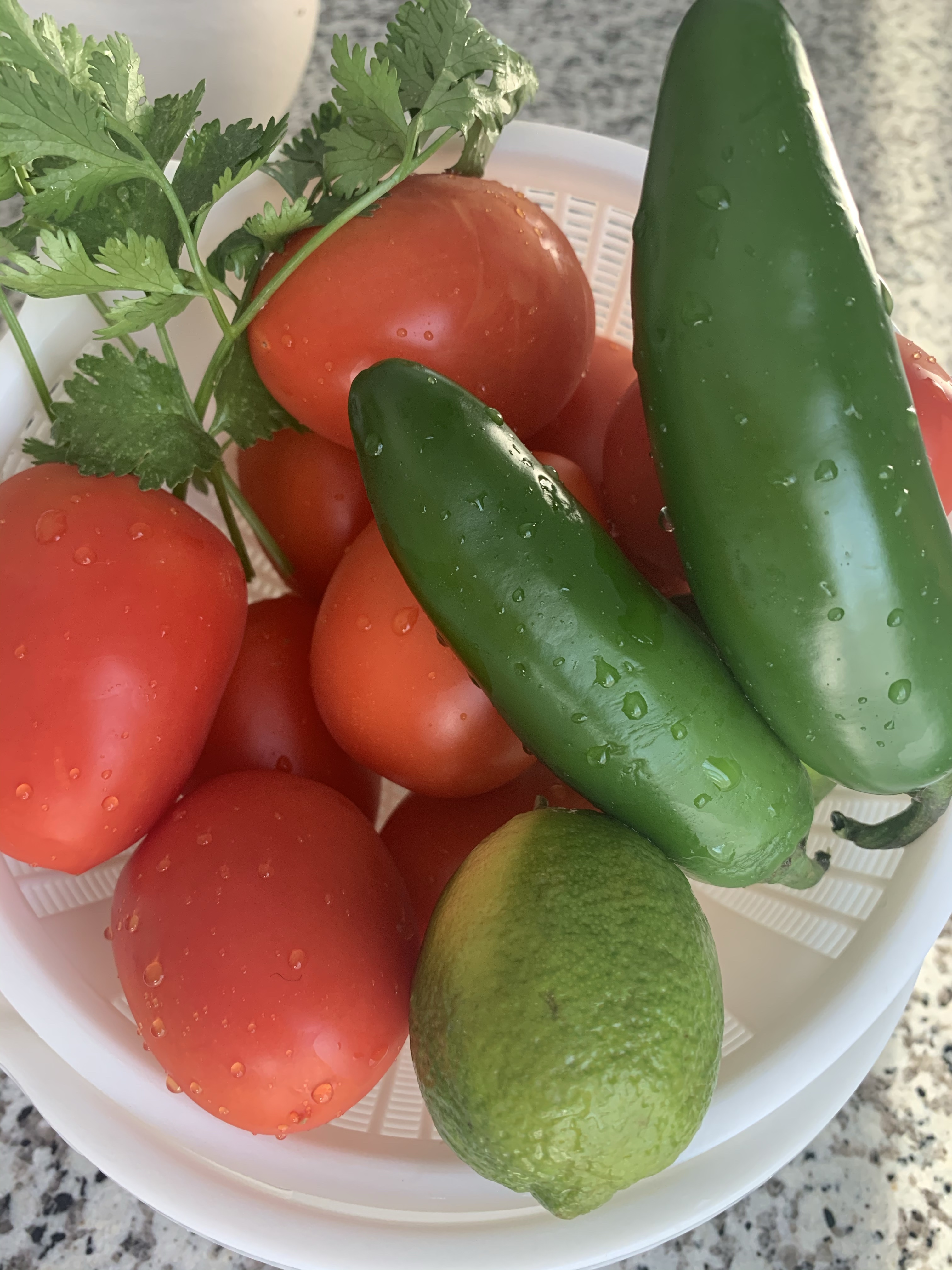 日曜日の朝7時。昨日ファーマーズマーケットで買ってきた新鮮な野菜でサルサ、ピコデガヨを作る。味付けは無し、野菜をみじん切りにして和えるだけ。最後にライムジュースを絞って出来上がり。卵焼きや、ソーセージ、もちろんサルサチップスにも相性ばっちり。
